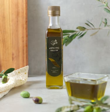 زيت زيتون بكر طبيعي ونقي، معصور على البارد من خيرات أرض البلقاء.